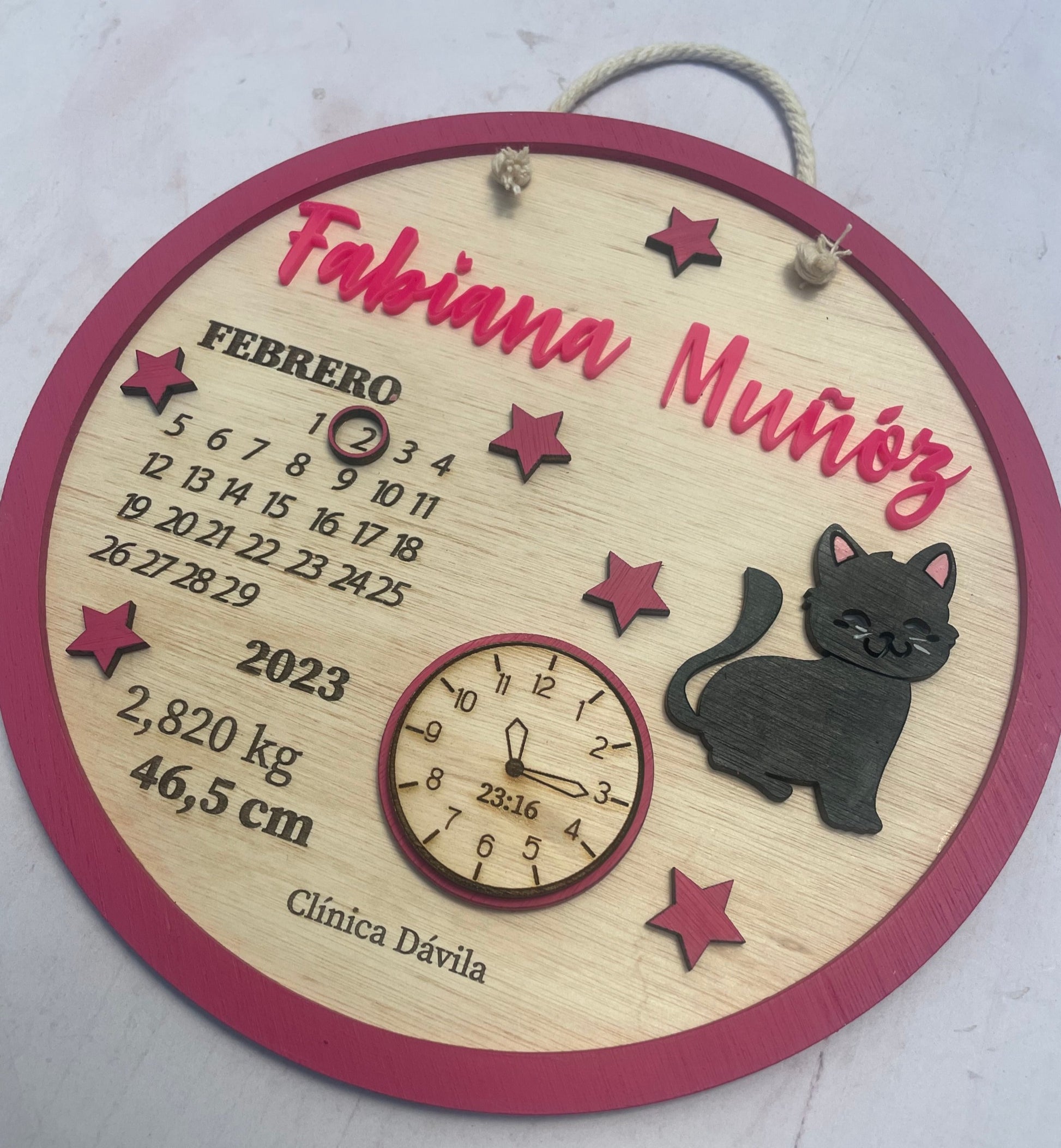 Cartel personalizado con datos de nacimiento.