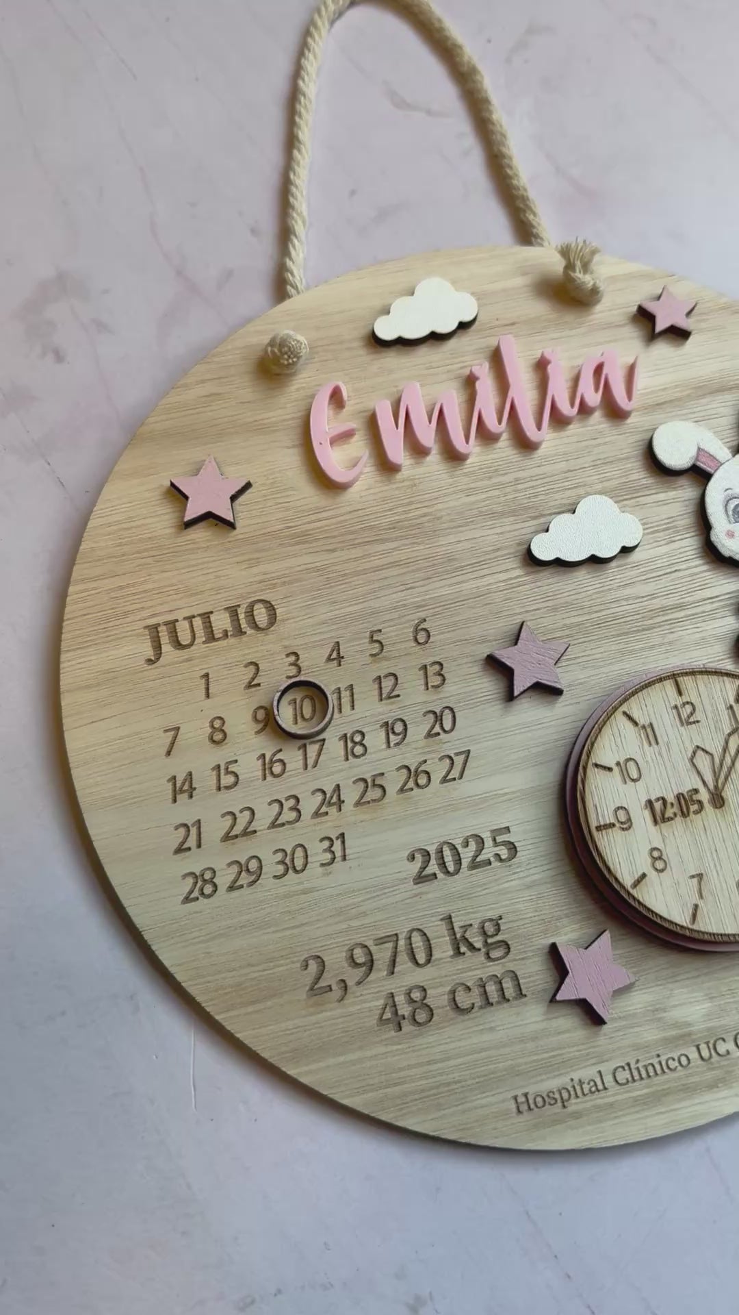 - Material: Madera terciada de alta calidad, con nombre en acrílico para un acabado sofisticado y resistente.