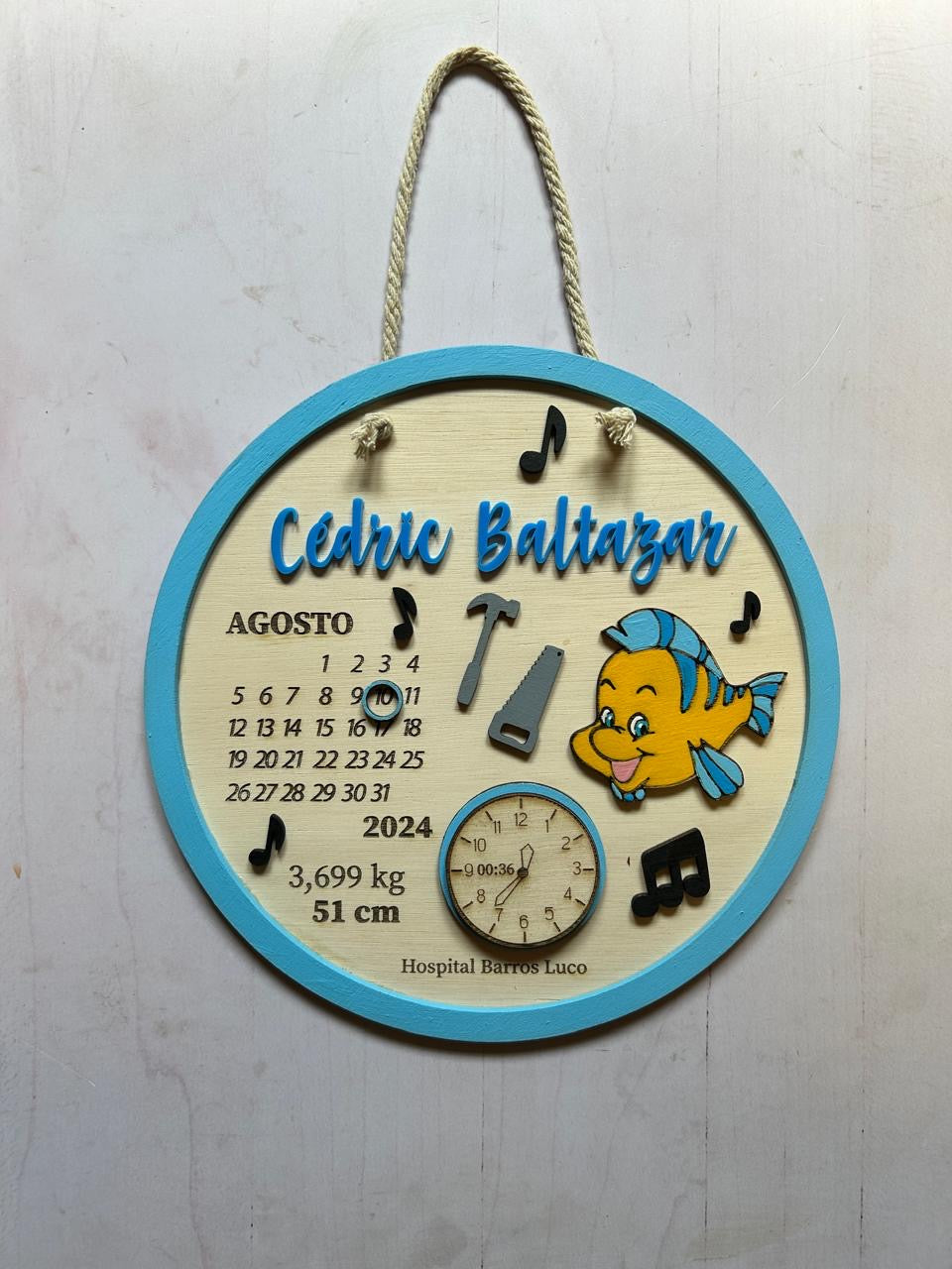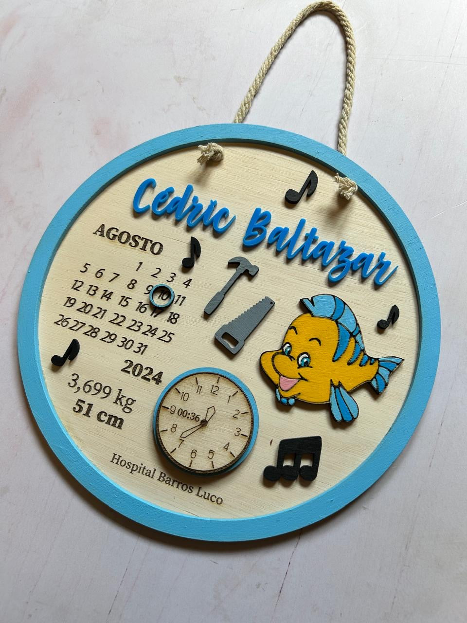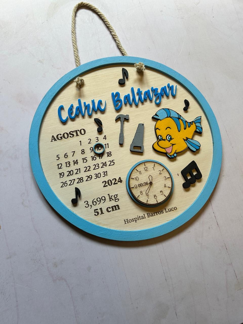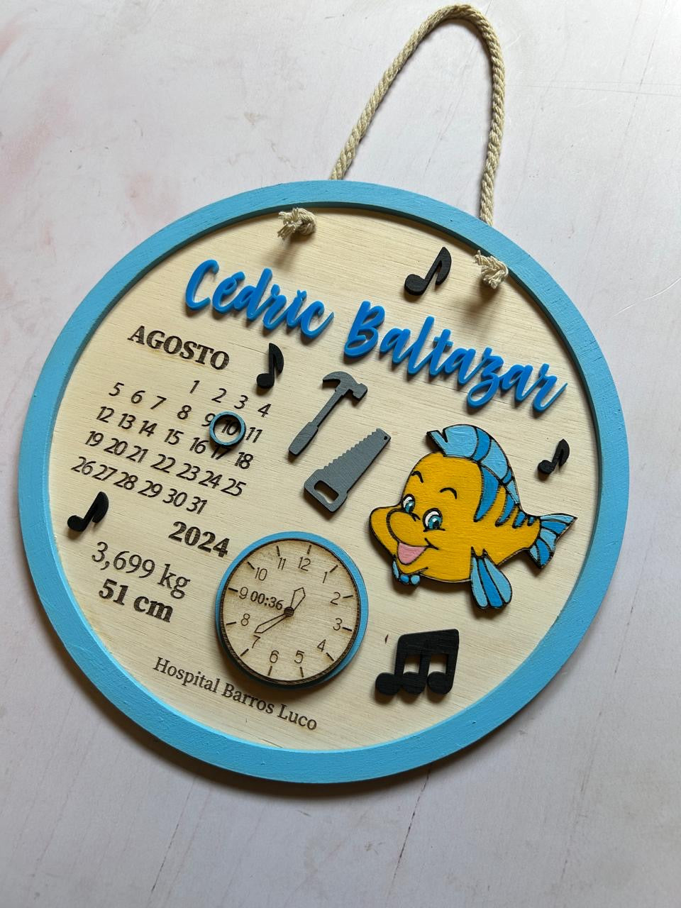 Material: madera terciada, cordón para colgar