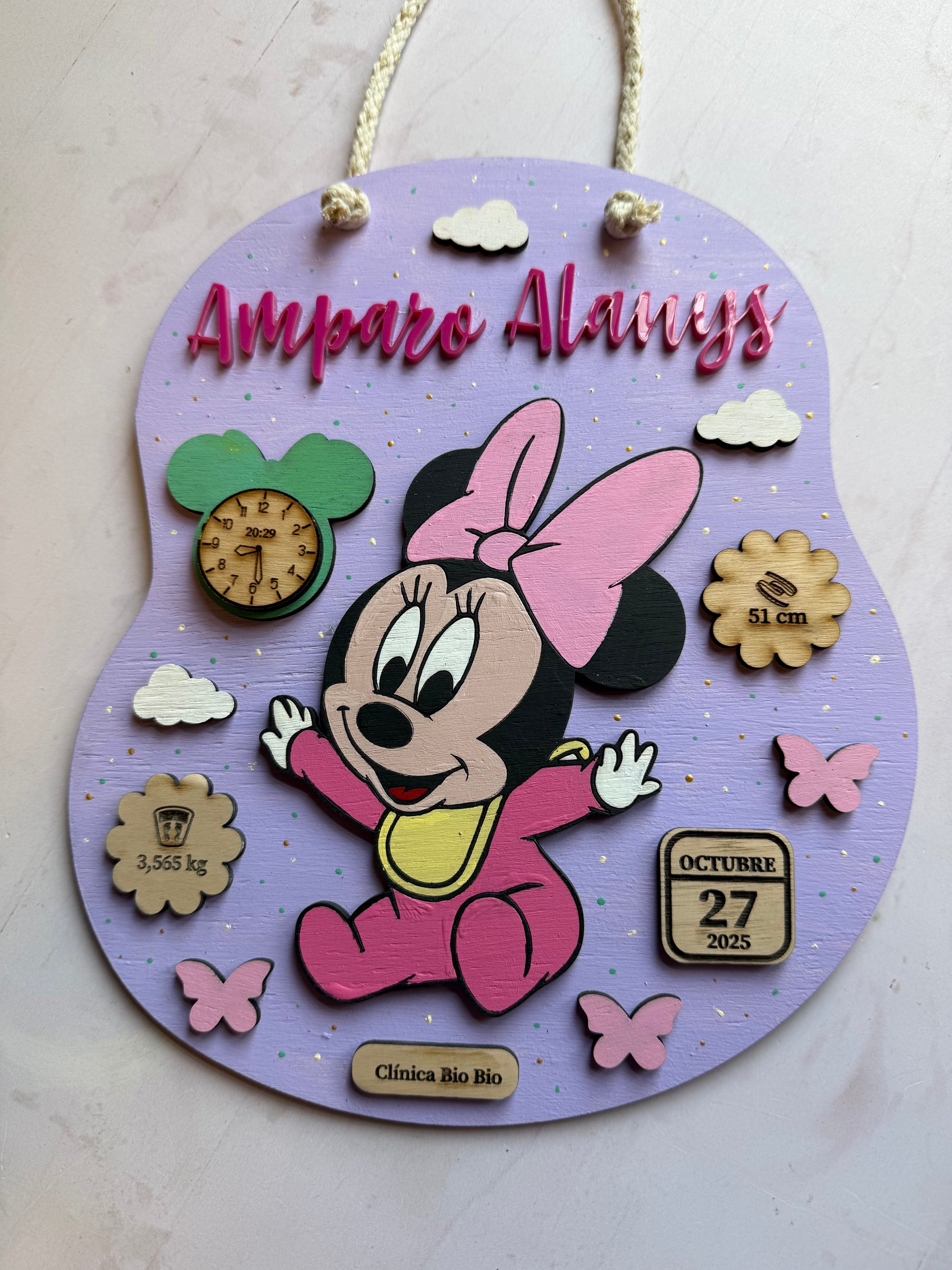Cartel Personalizado con Datos de Nacimiento de Minnie bebé
