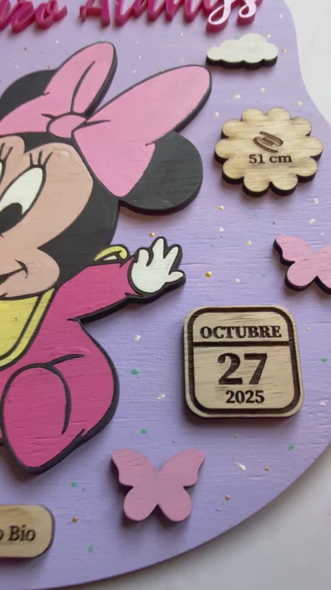 - Materiales: Madera terciada de alta calidad y cordón resistente para colgar y nombre en acrílico.
