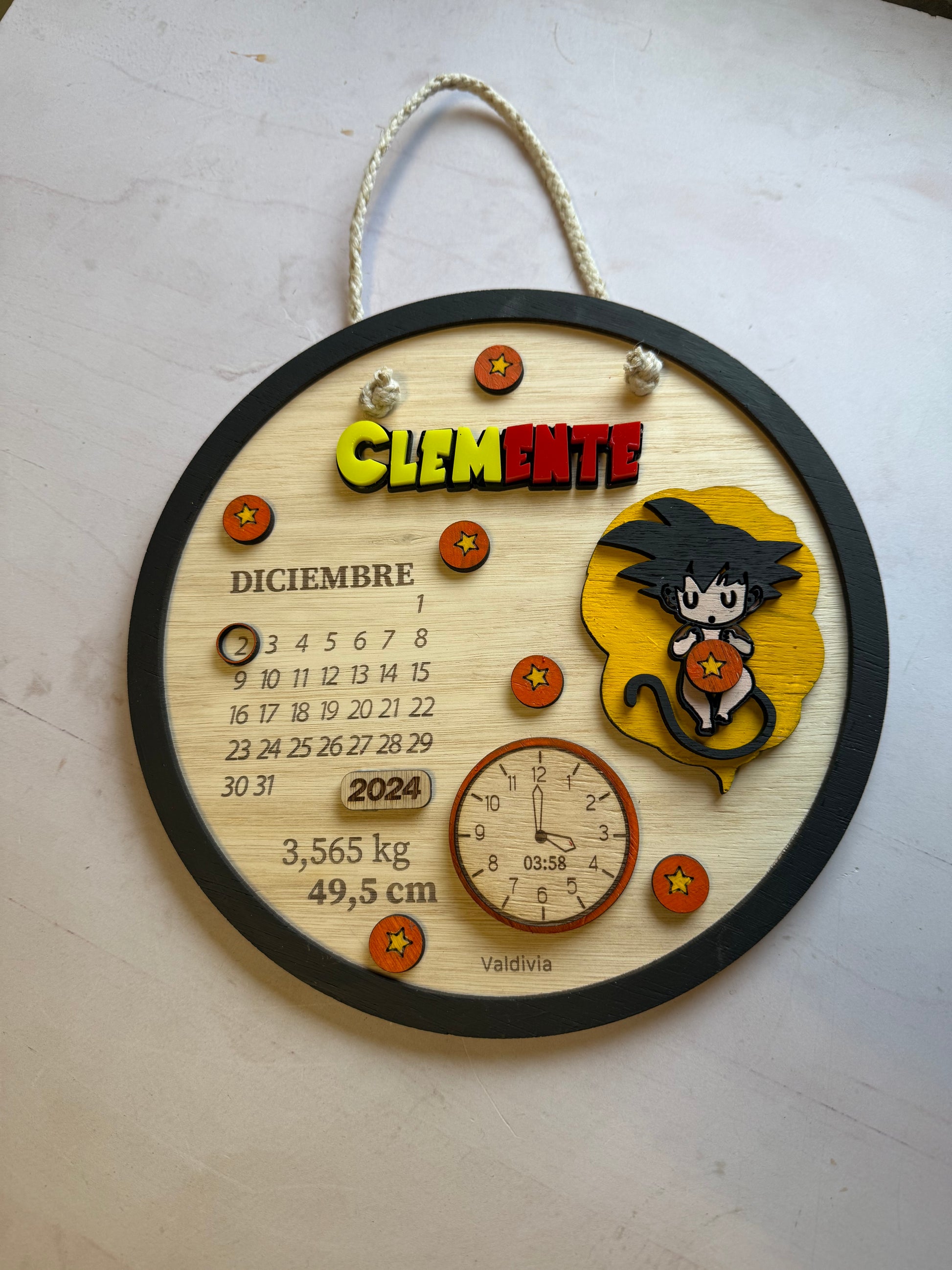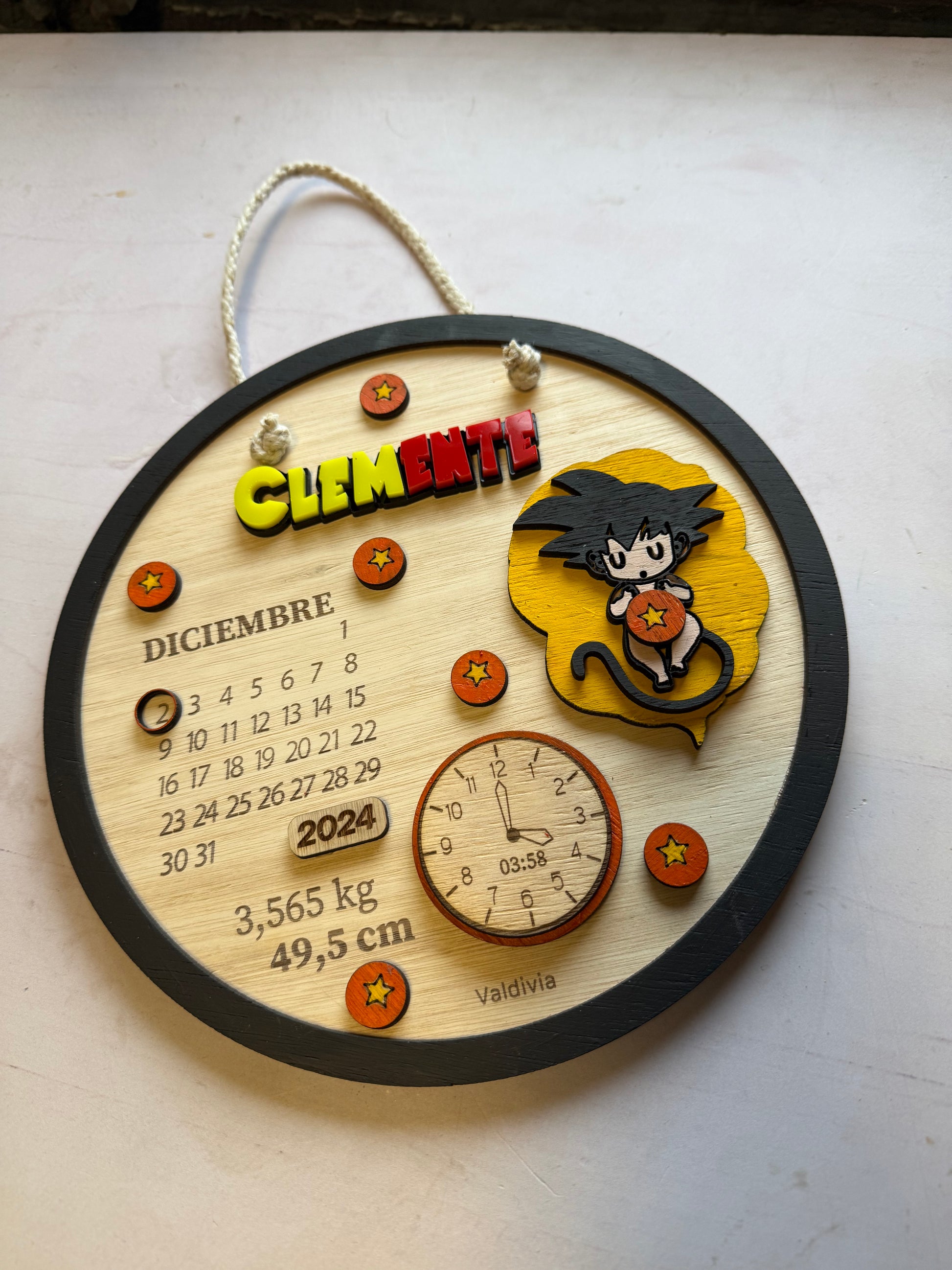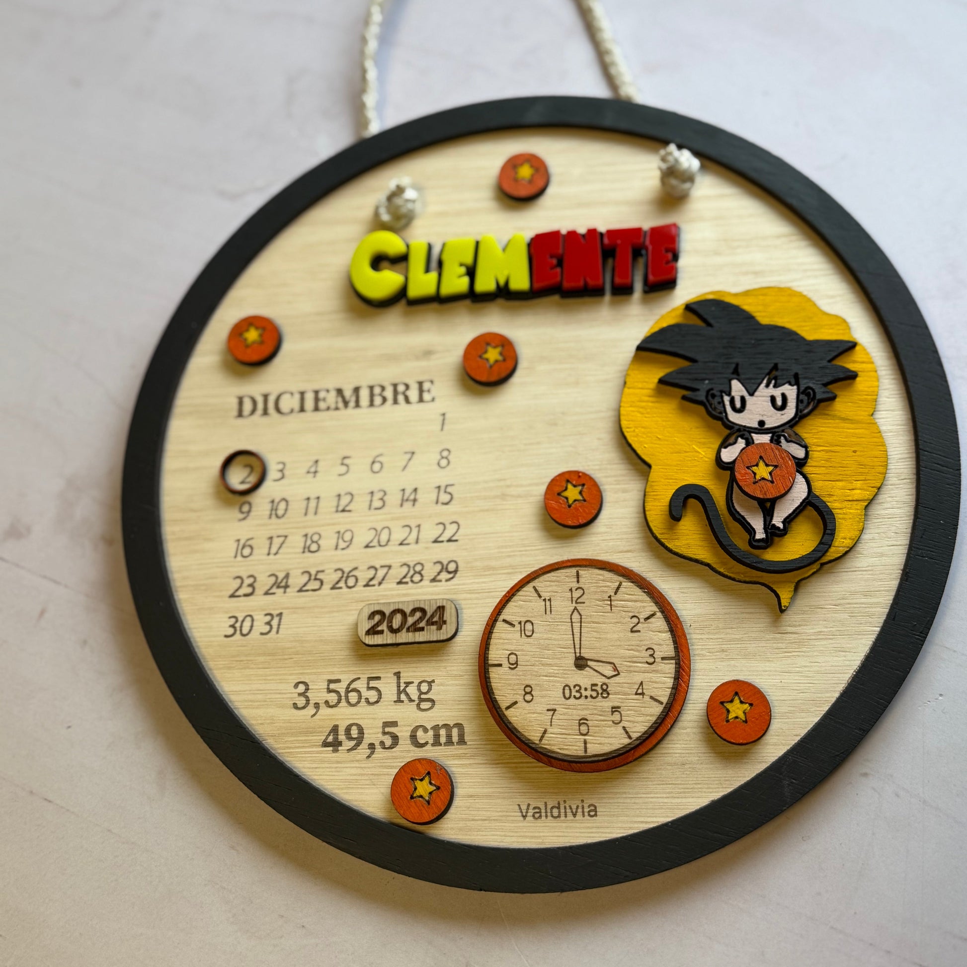 Material: madera terciada, cordón para colgar