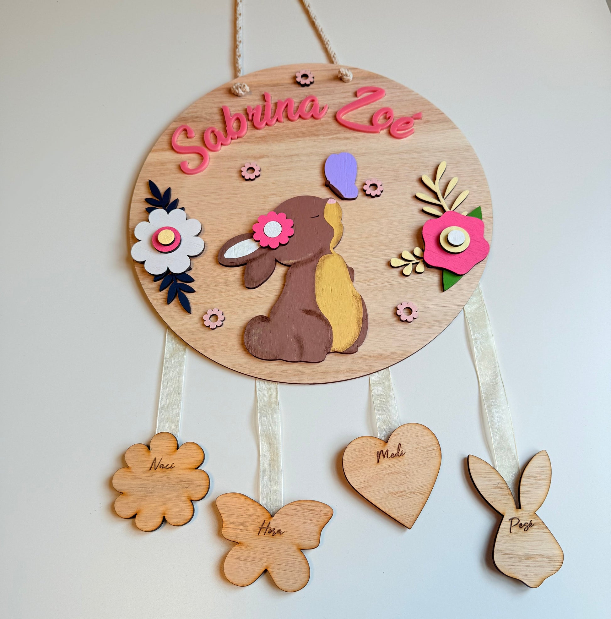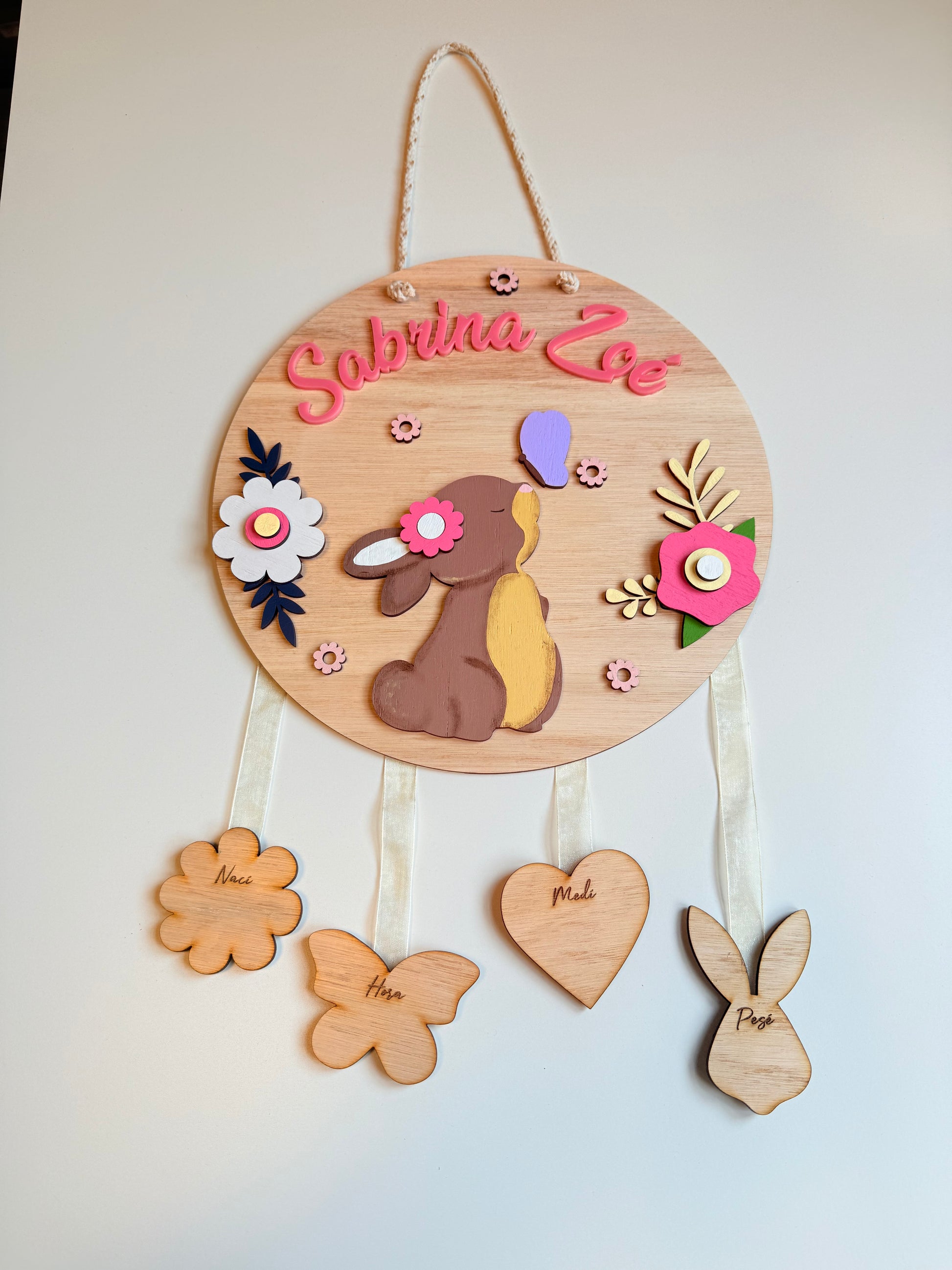 Material: madera terciada, cordón para colgar