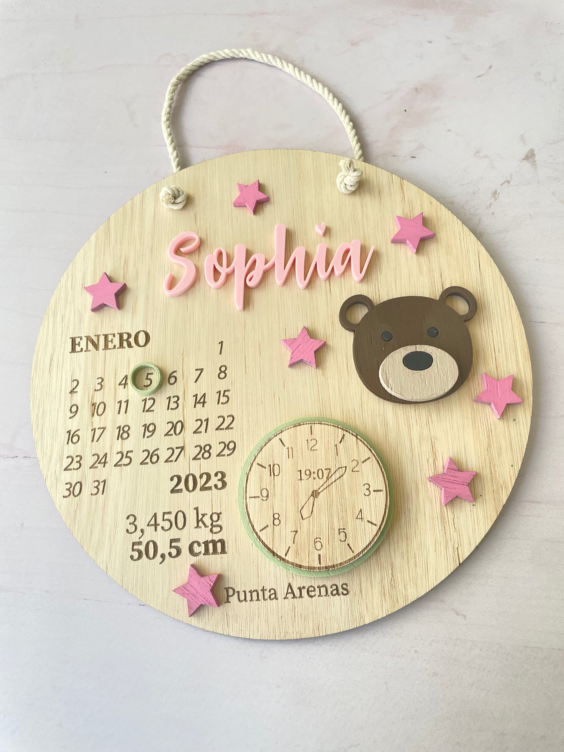 Este cartel personalizado es perfecto para celebrar y recordar el nacimiento de un ser querido. Con un diseño único de Oso, es un hermoso detalle que inmortaliza ese momento especial.