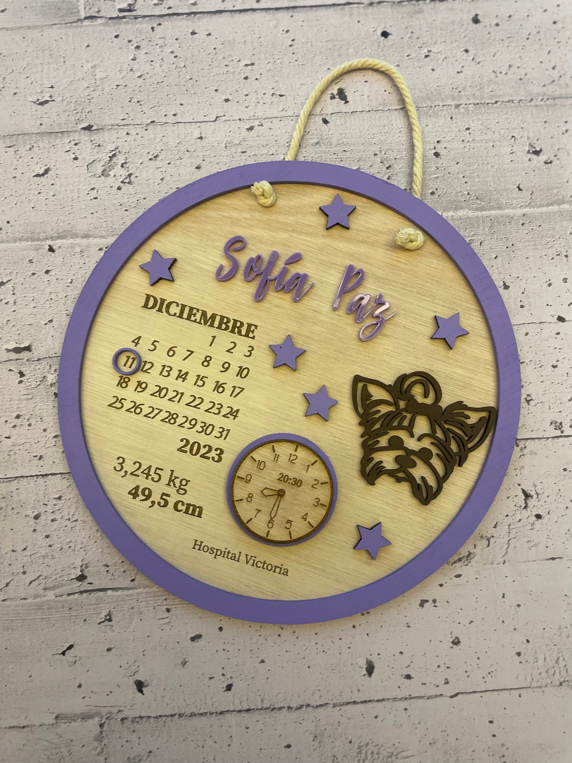 Cartel personalizado con datos de nacimiento.