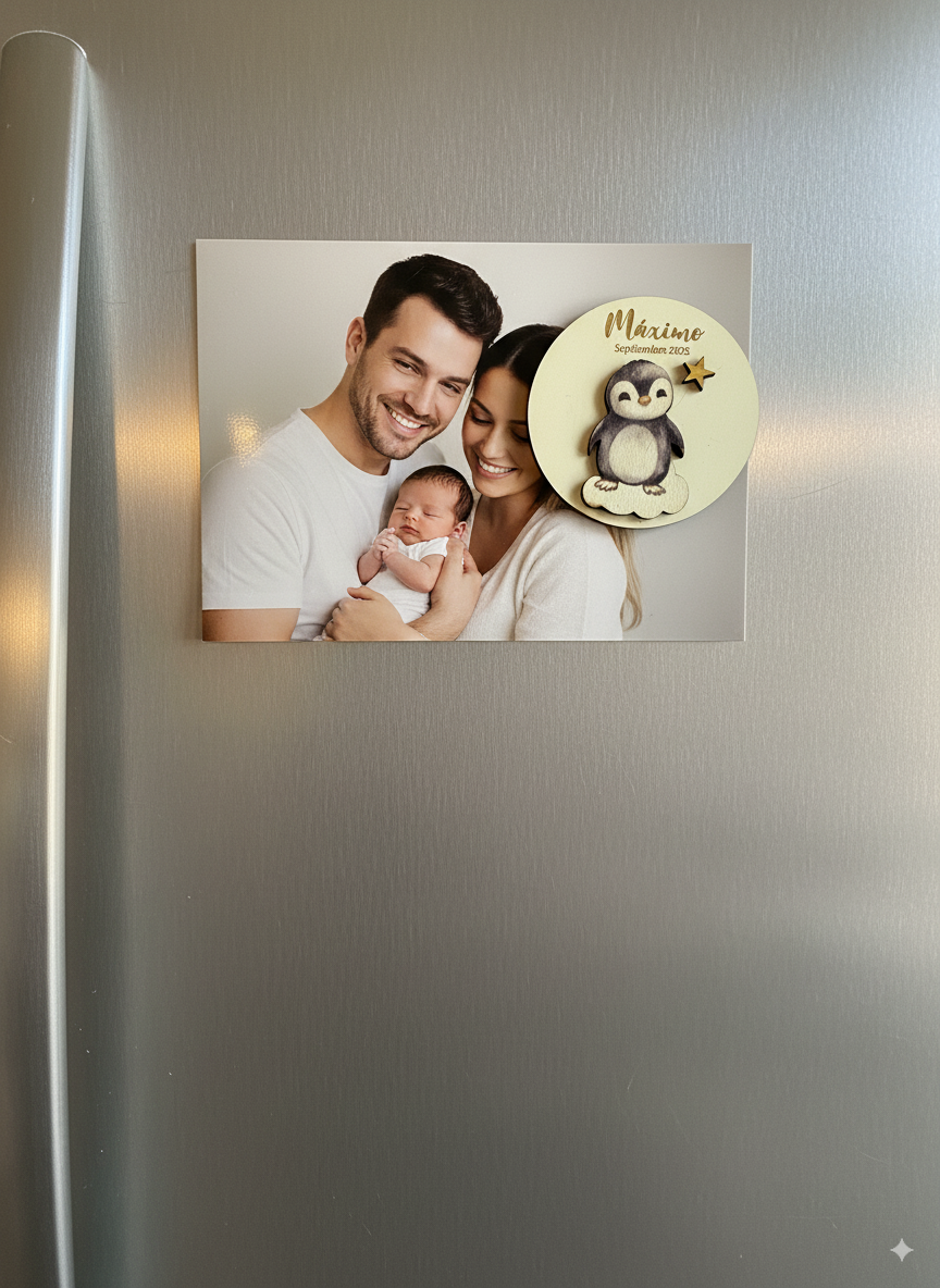 Este recuerdo personalizado en madera es ideal para eventos especiales como nacimientos, bautizos o baby showers. Diseñado en madera durolac blanca y pintado a mano, el modelo de Pinguino añade un toque tierno y original a tus momentos más memorables.