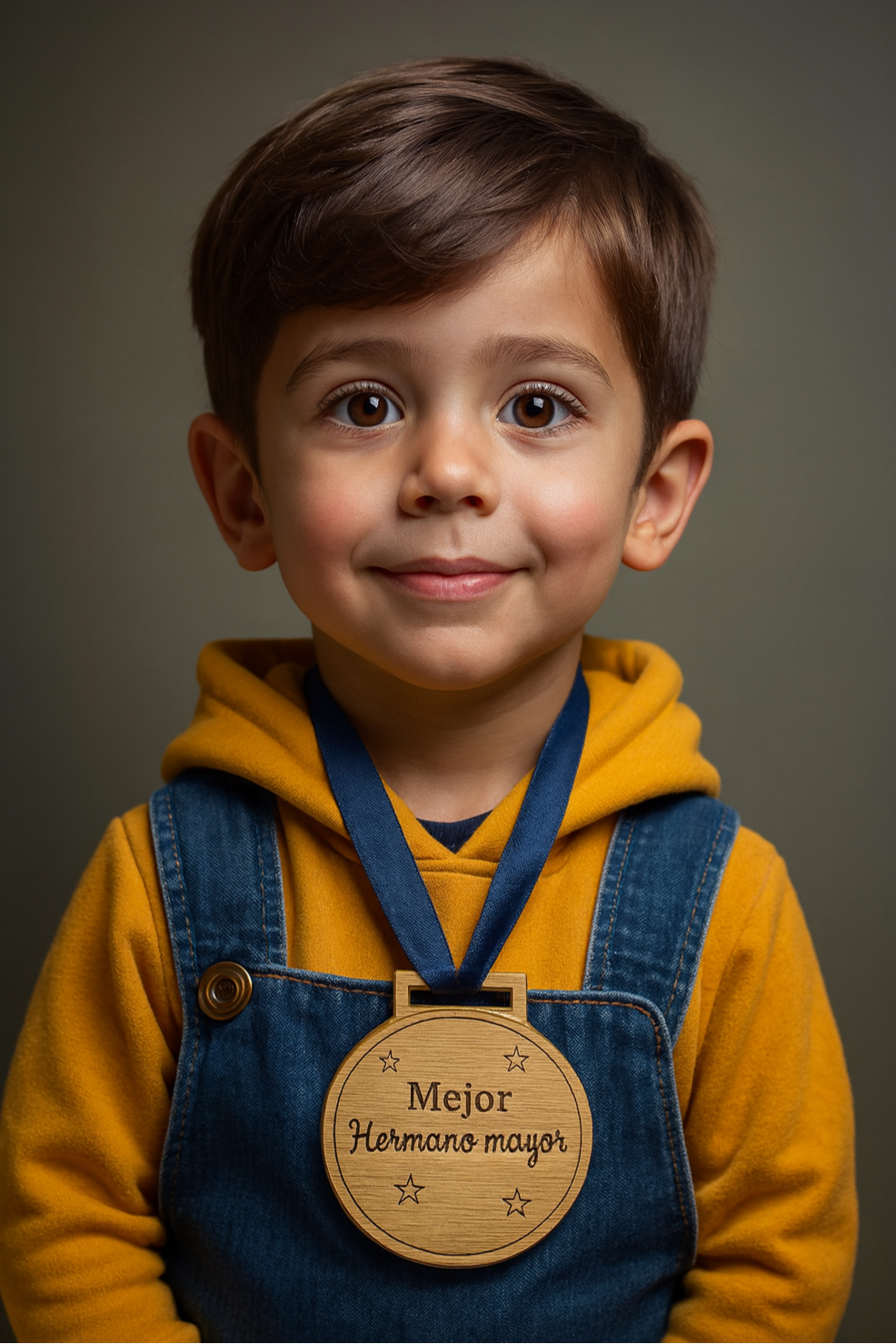 Celebra la llegada de un nuevo integrante de la familia con nuestra medalla de madera para hermano mayor 🐻✨.
