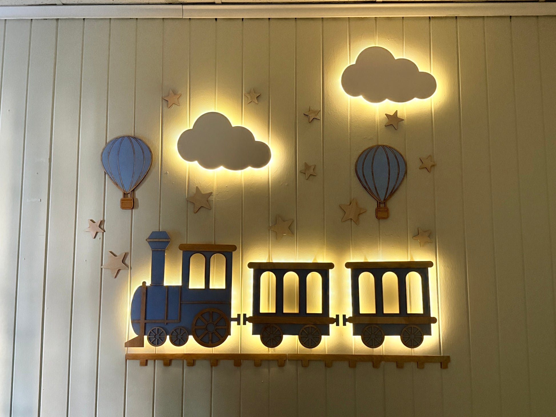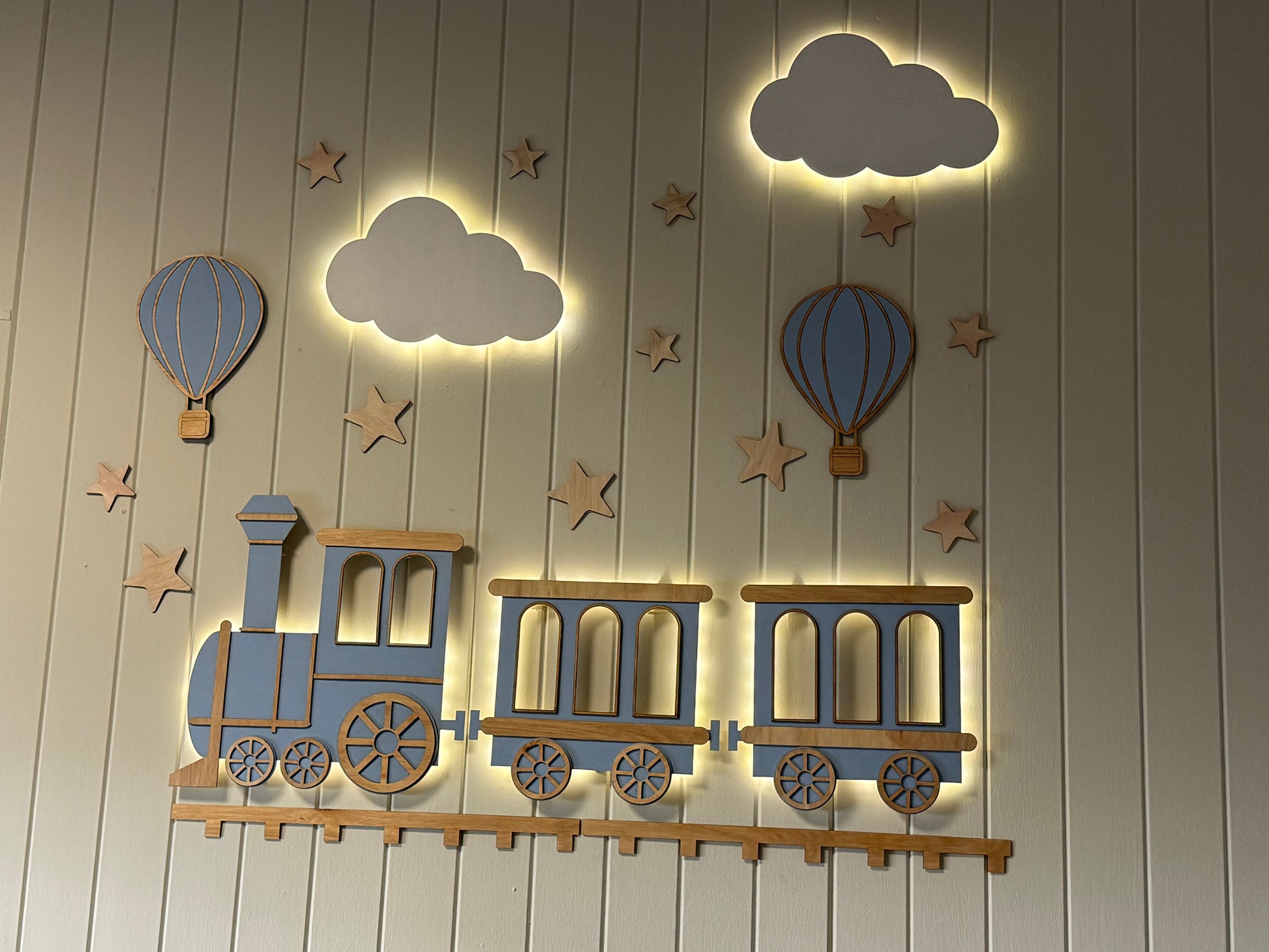 el tren tiene un ancho de 110 cm en total , de alto depende como vayan colocando los elementos pero referencia de la foto es 150 cm de alto aprox
