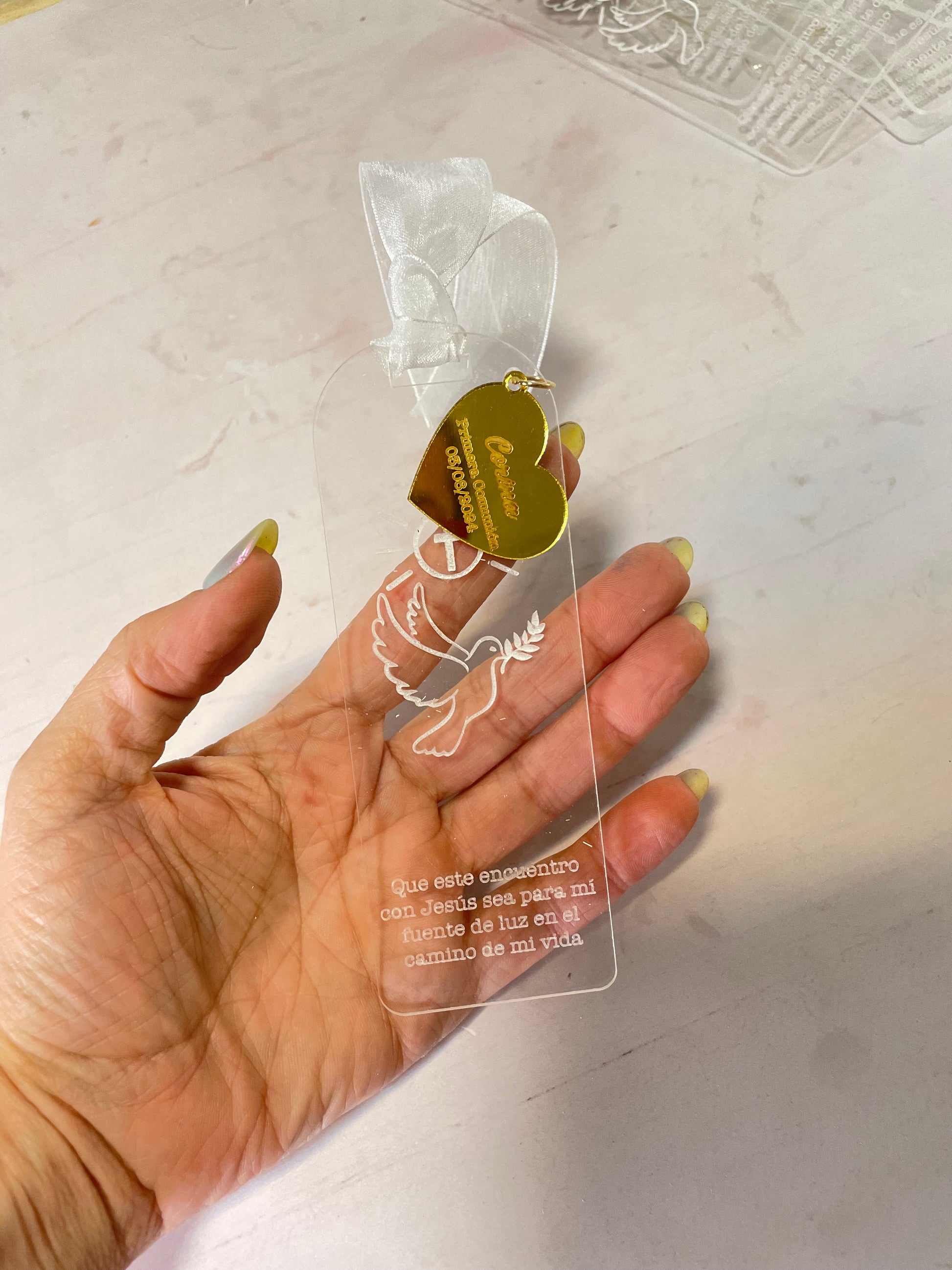 Recuerdo de primera comunión, se puede dar como marcapágina o simplemente como un encintado premium en acrílico.