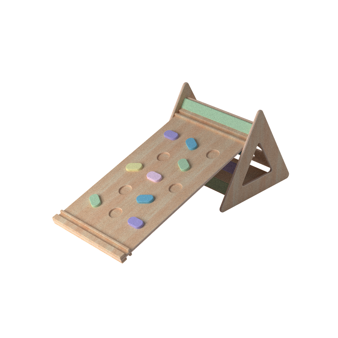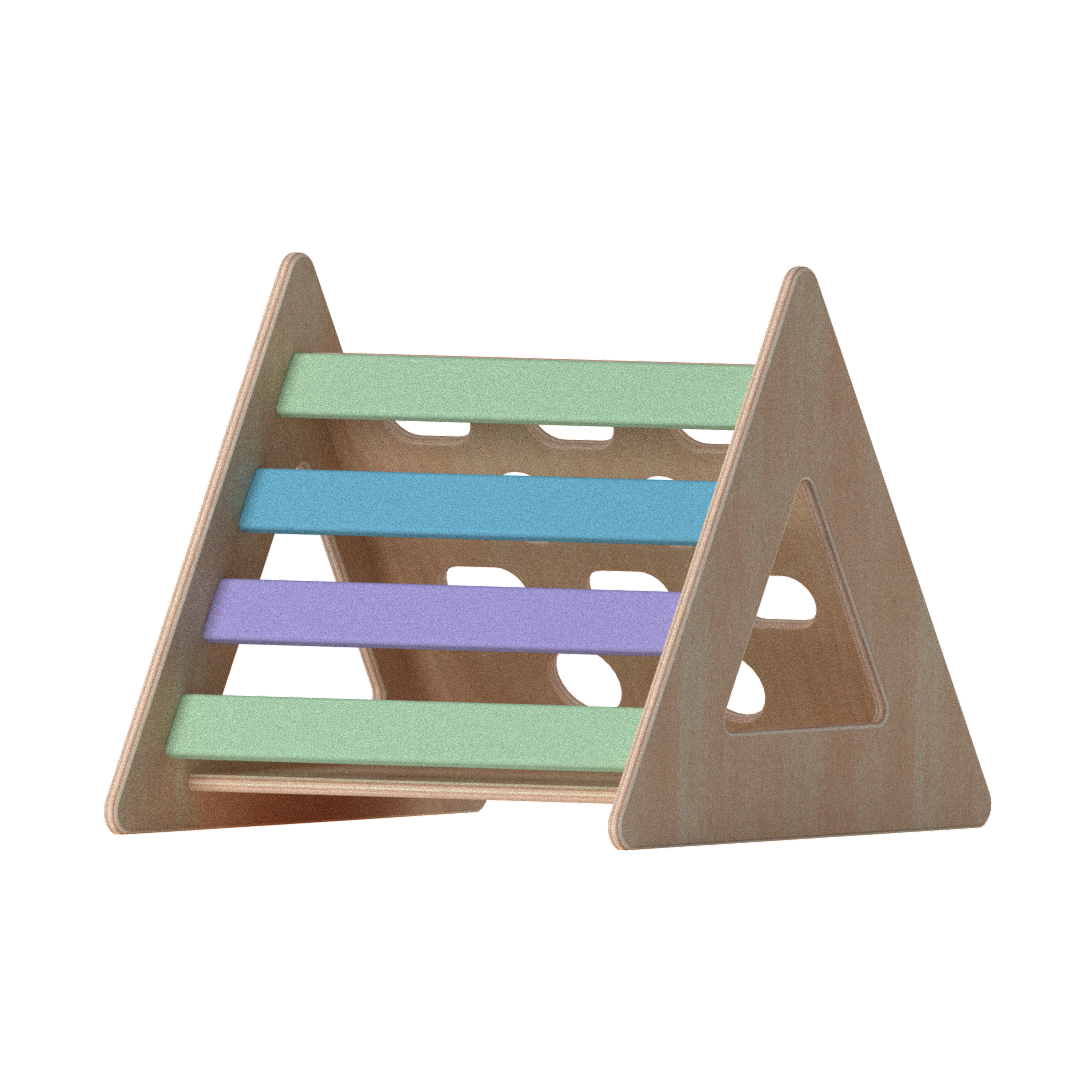 Ideal para interiores, salas de juego y ambientes Montessori o Waldorf, este triángulo es una herramienta pedagógica que potencia la motricidad gruesa y el desarrollo físico integral.
